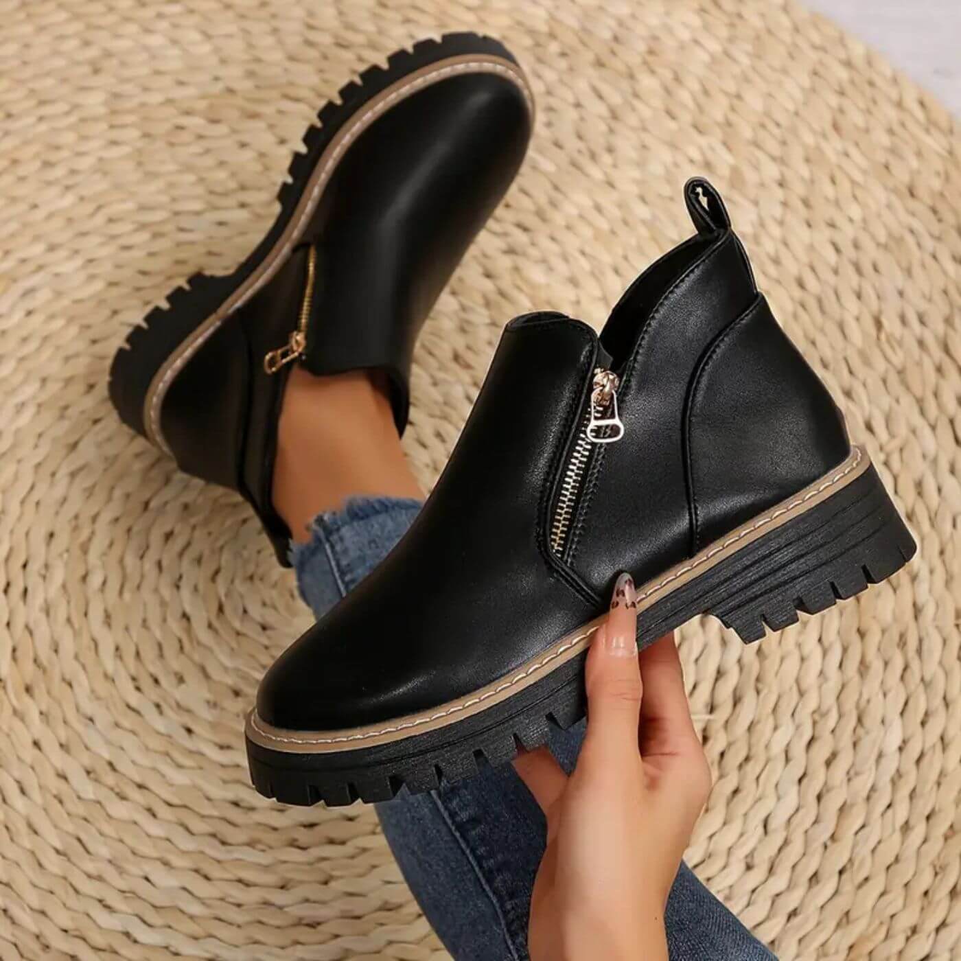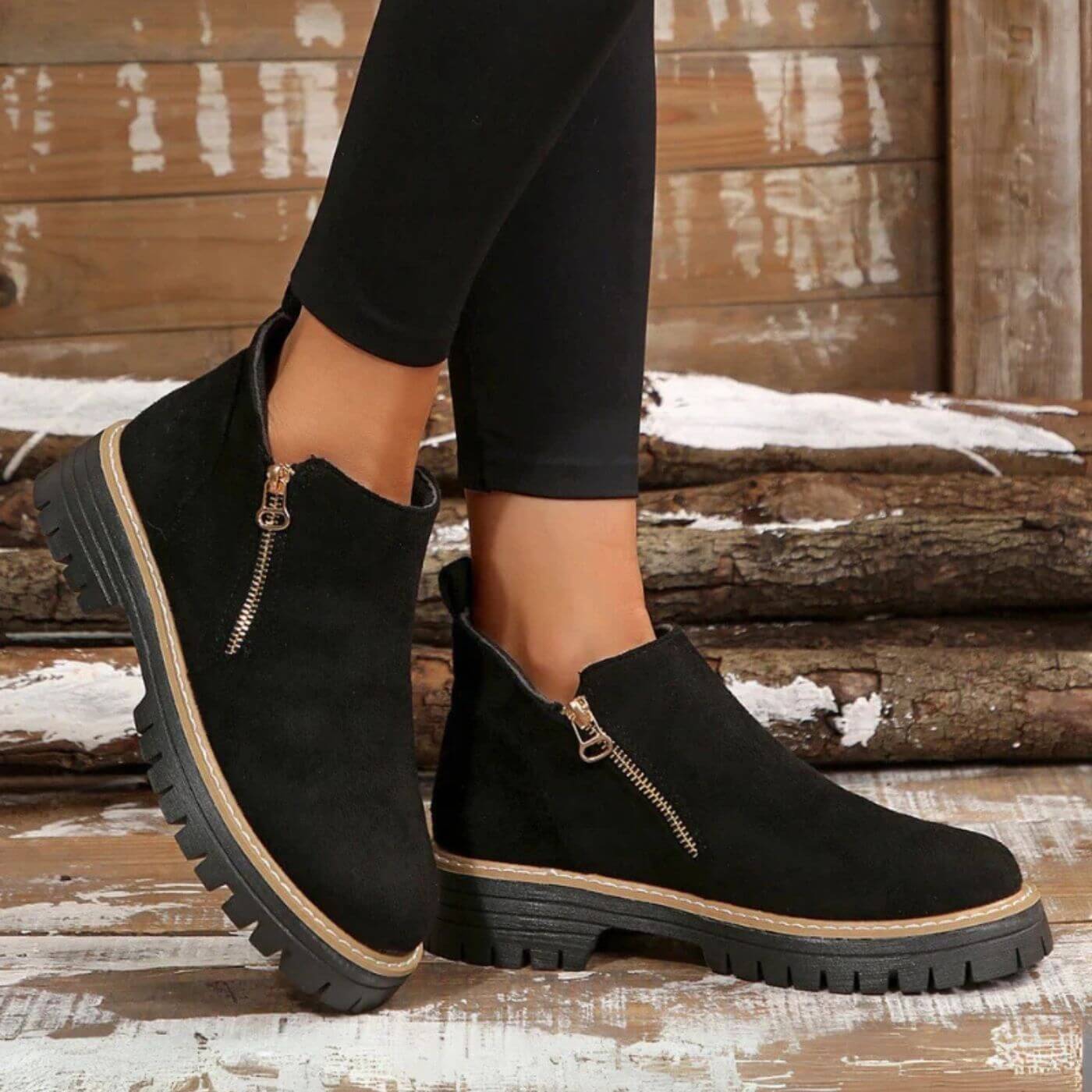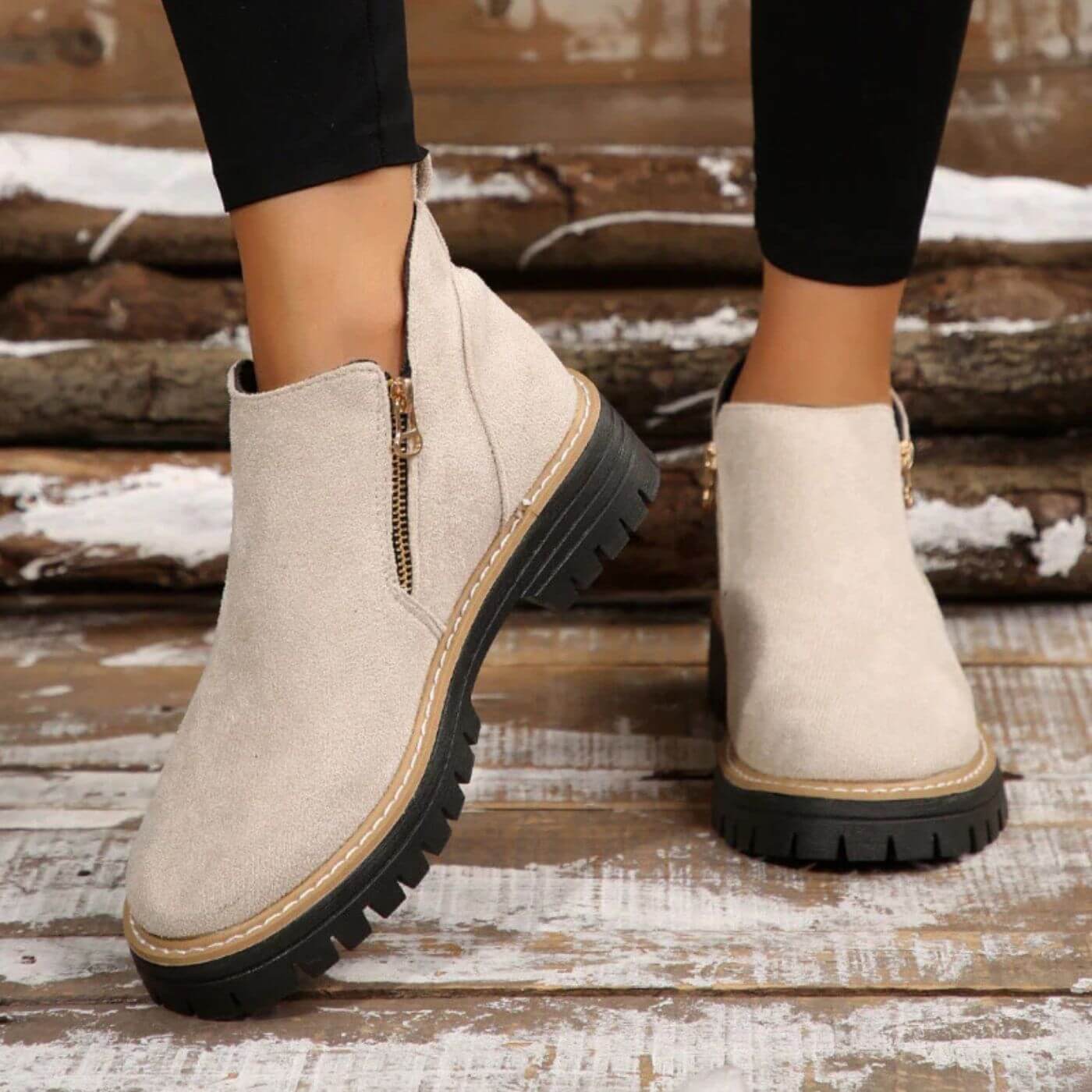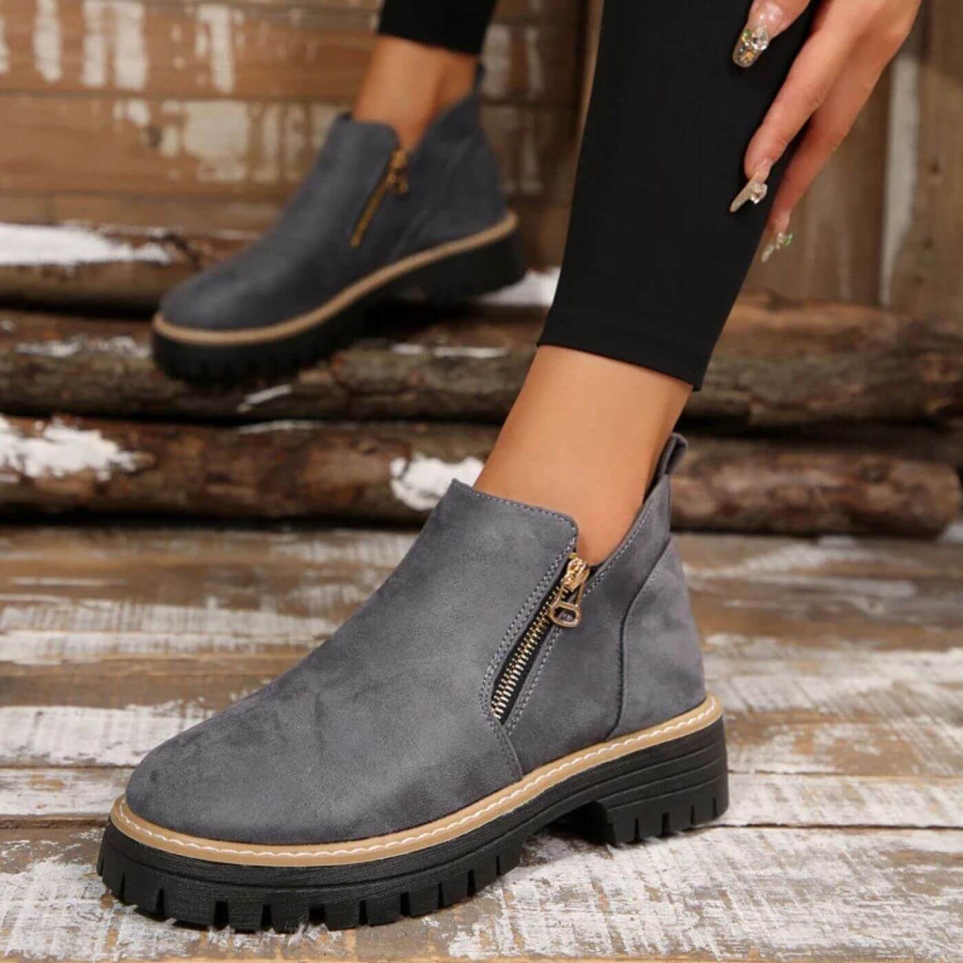 Dies sind nicht nur irgendwelche Schuhe; sie bieten Komfort und Stil bei jedem Schritt. Die weiche und warme Textur umhüllt Ihre Füße mit unwiderstehlichem Komfort, während das raffinierte und vielseitige Design sie zum perfekten Accessoire für Herbst und Winter macht. Ideal für gemütliche Spaziergänge, Nachmittage mit Freunden oder um Ihrem Alltagsoutfit einen Hauch von natürlicher Eleganz zu verleihen.
